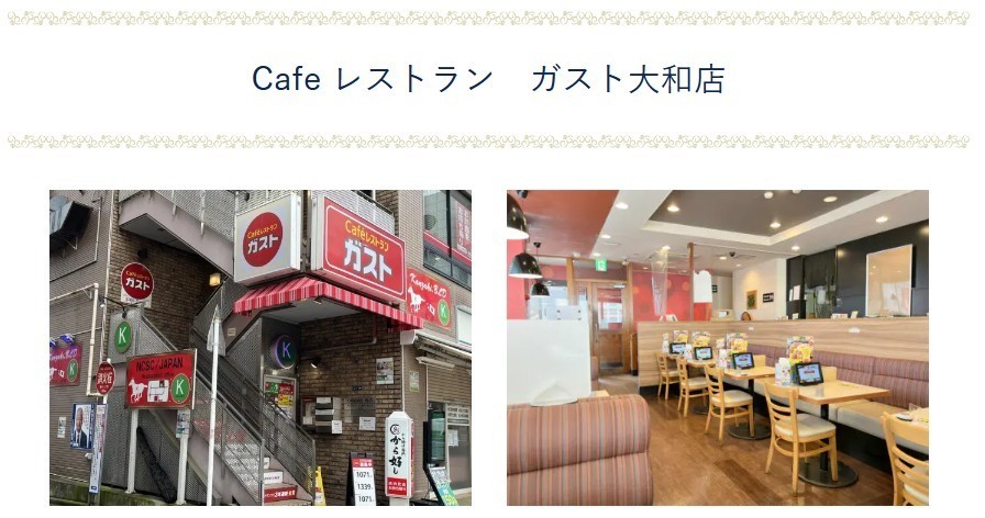 ホテルから徒歩2分、大和駅前にあるガスト大和店にてホテル専用モーニングをご提供。